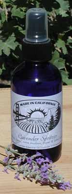 Made in California Lavender Spritzer - This Lavender water has endless uses. Use as a refreshing all-over body spray, convenient air purifier, room freshener, or lightly mist your linens, furniture, or bed sheets for a sensual sensation. Spray on a cloth and toss in your dryer for fresh, hot lavender smelling clothes! Contains Lavender Essential Oil, Lavender Hydrosol and Water. 4 oz spray bottle.